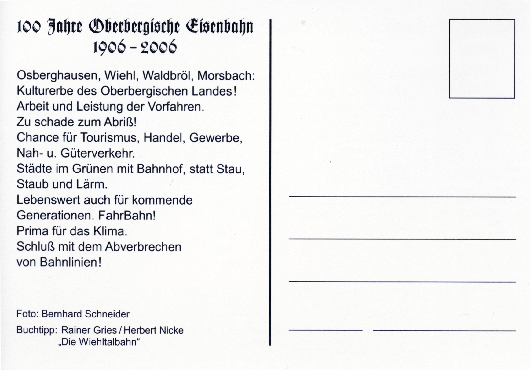 - Waldbröl in eigener Initiative eine Postkarte und gleichartige Plakate